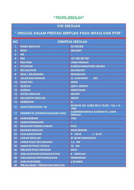 Join facebook to connect with sdn ipanggang jepara and others you may know. Data yang ada akan dideskripsikan secara. Sdn menteng 02 pagi• kepala sekolah : Text of format profil sekolah sma. Sdn ipanggang jepara is on facebook.